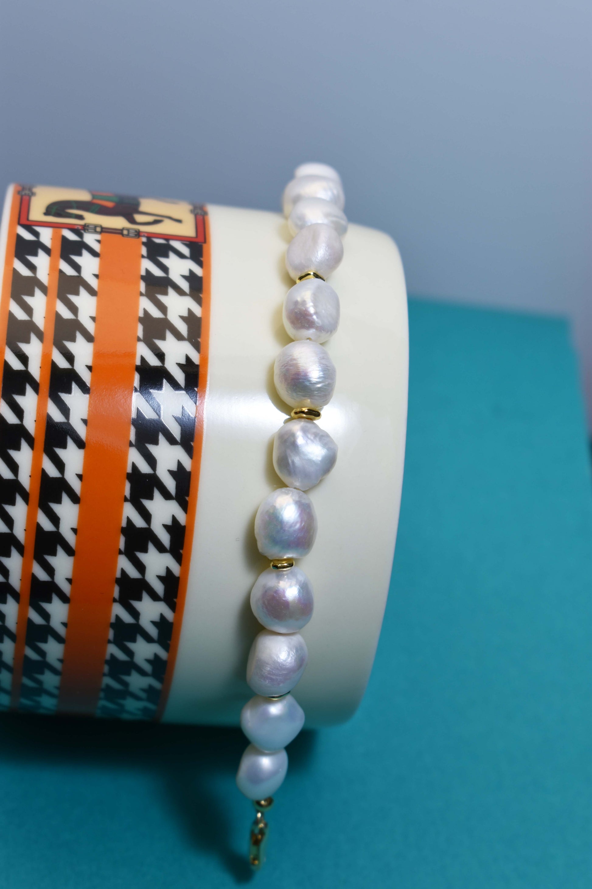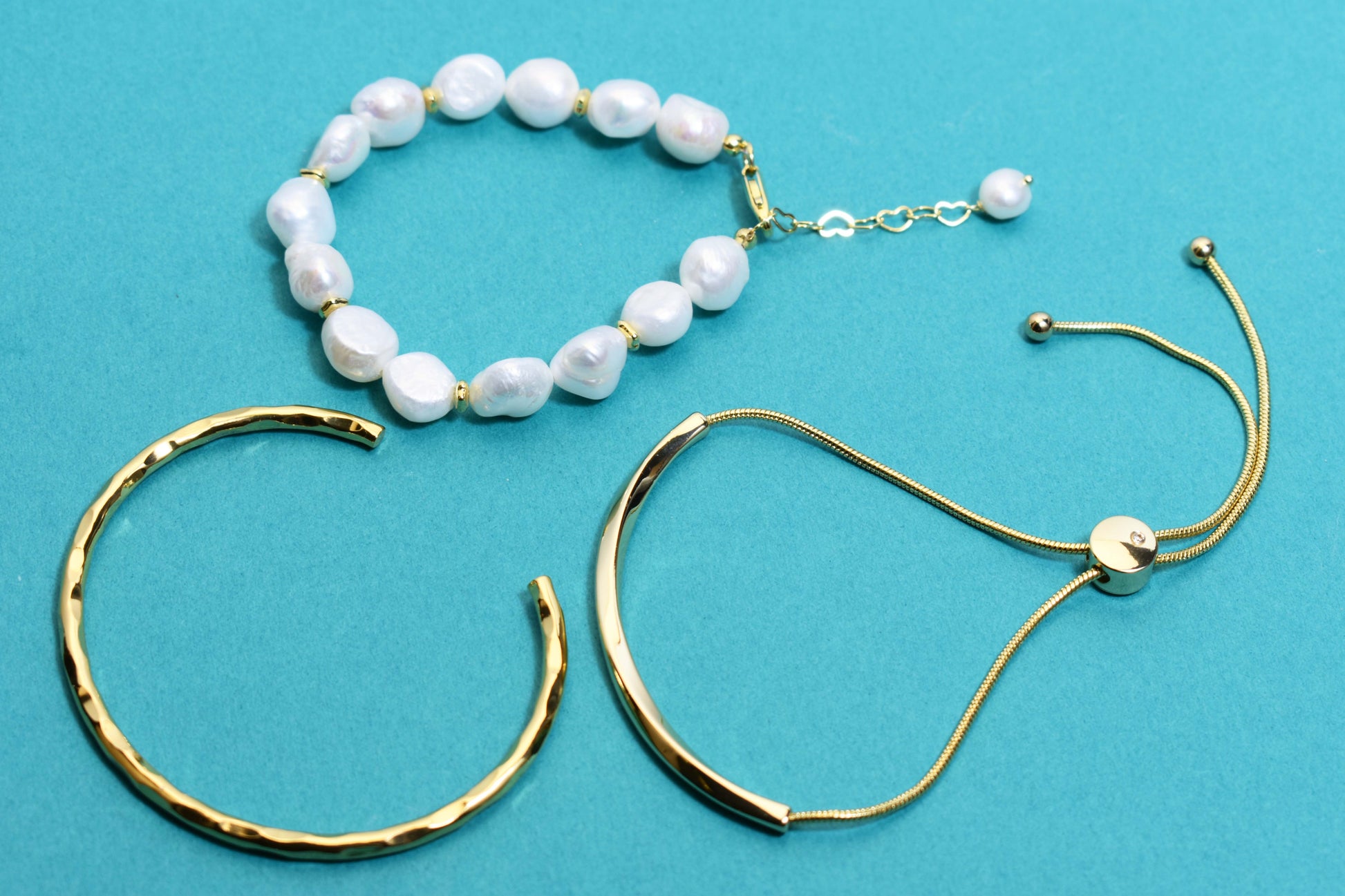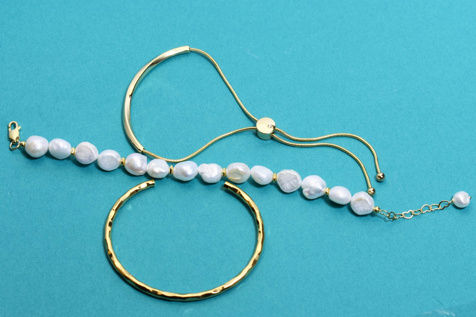Natural Baroque Pearl Bracelet Set of Three Smile Bracelet Gold Open Hammer Bracelet