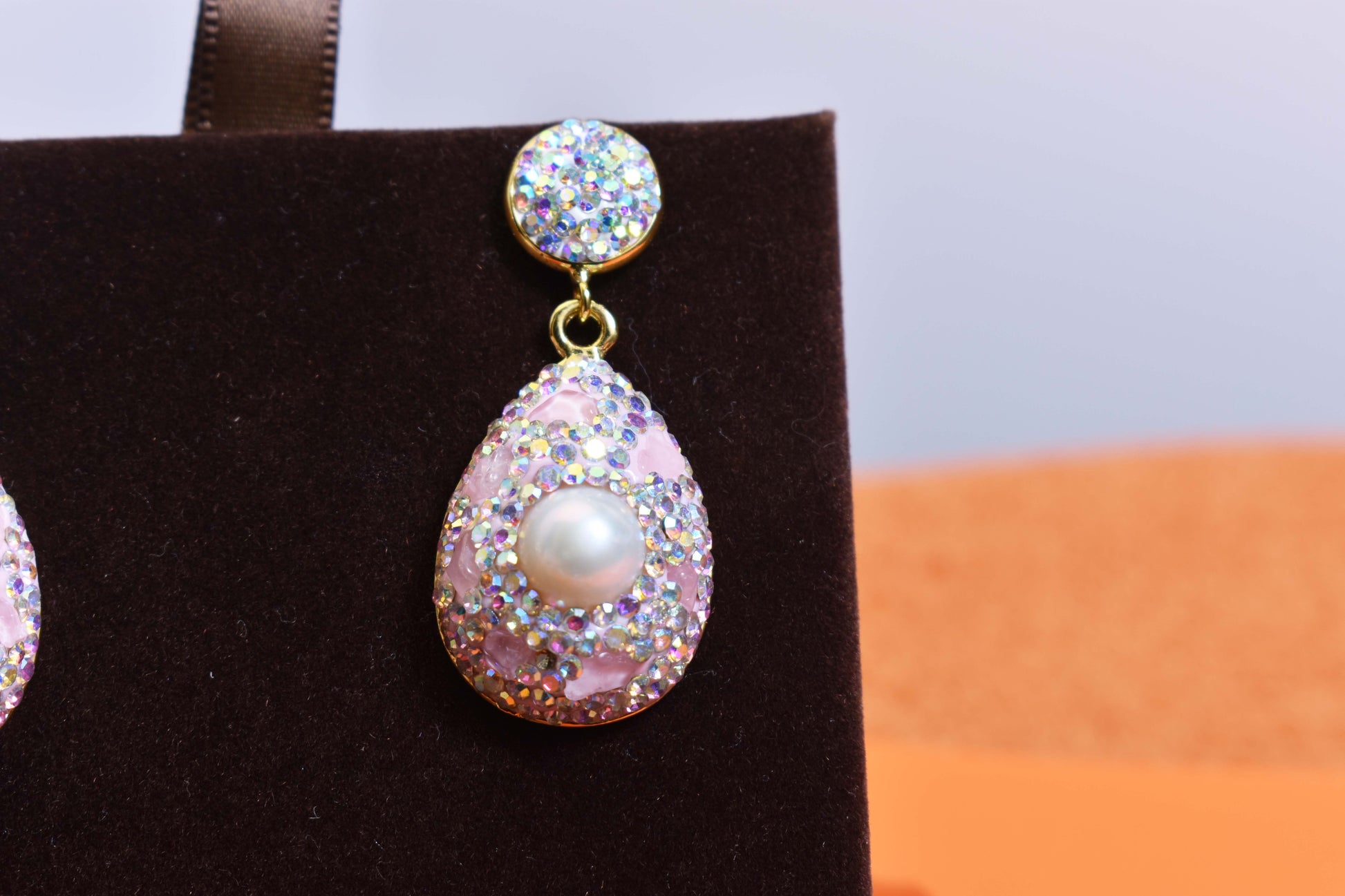 Natural pearl long earrings with three-dimensional inlaid powder crystal zircon, gorgeous earrings