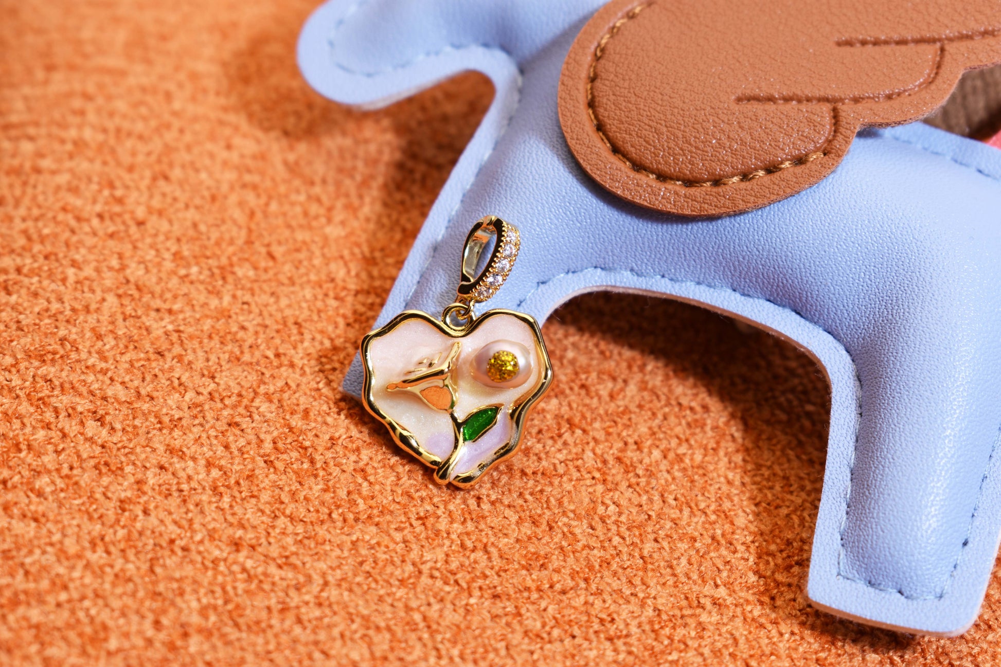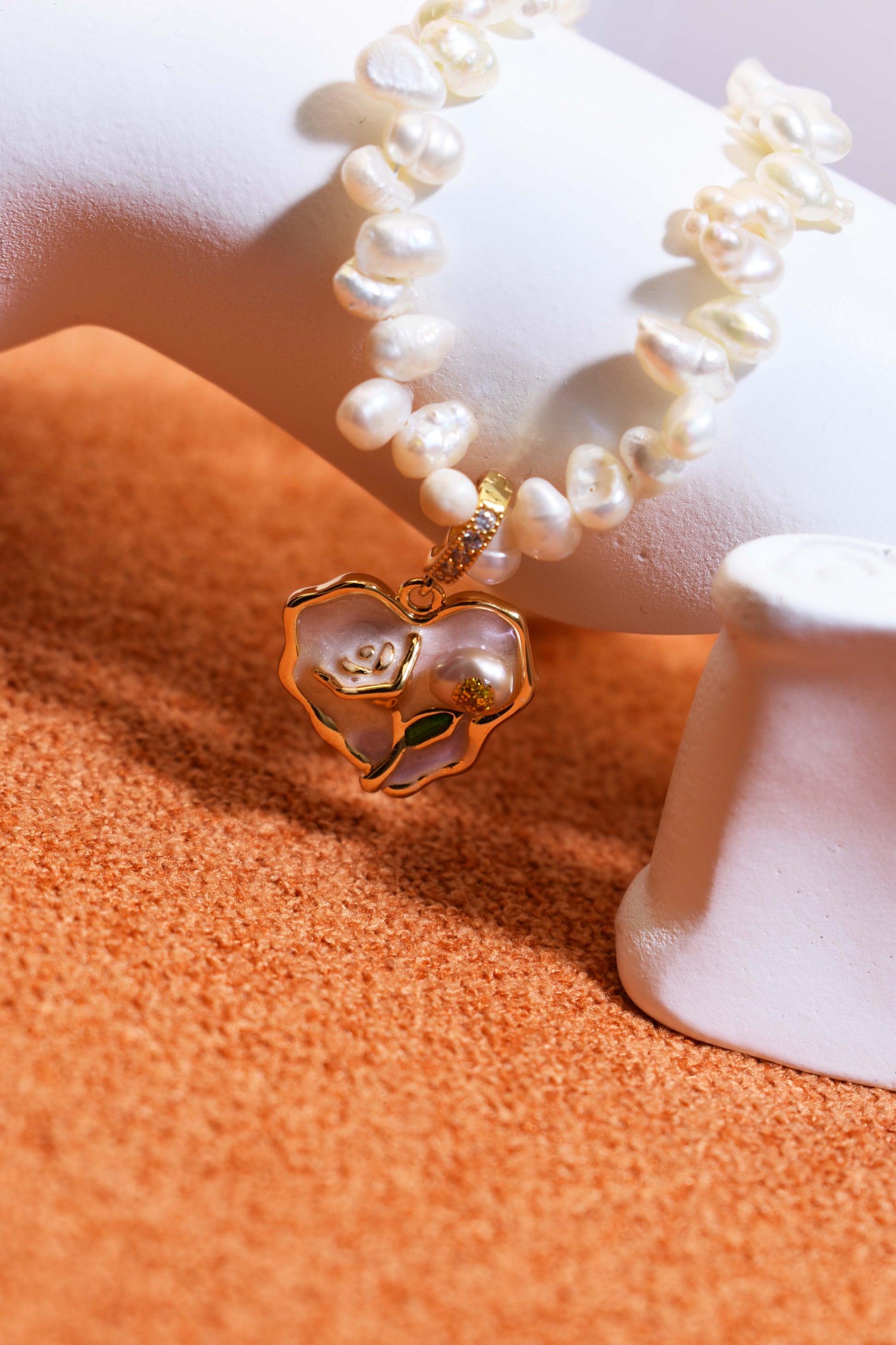 Natural pearl necklace pendant, light pink purple heart-shaped enamel craftsmanship, three-dimensional rose shaped pendant