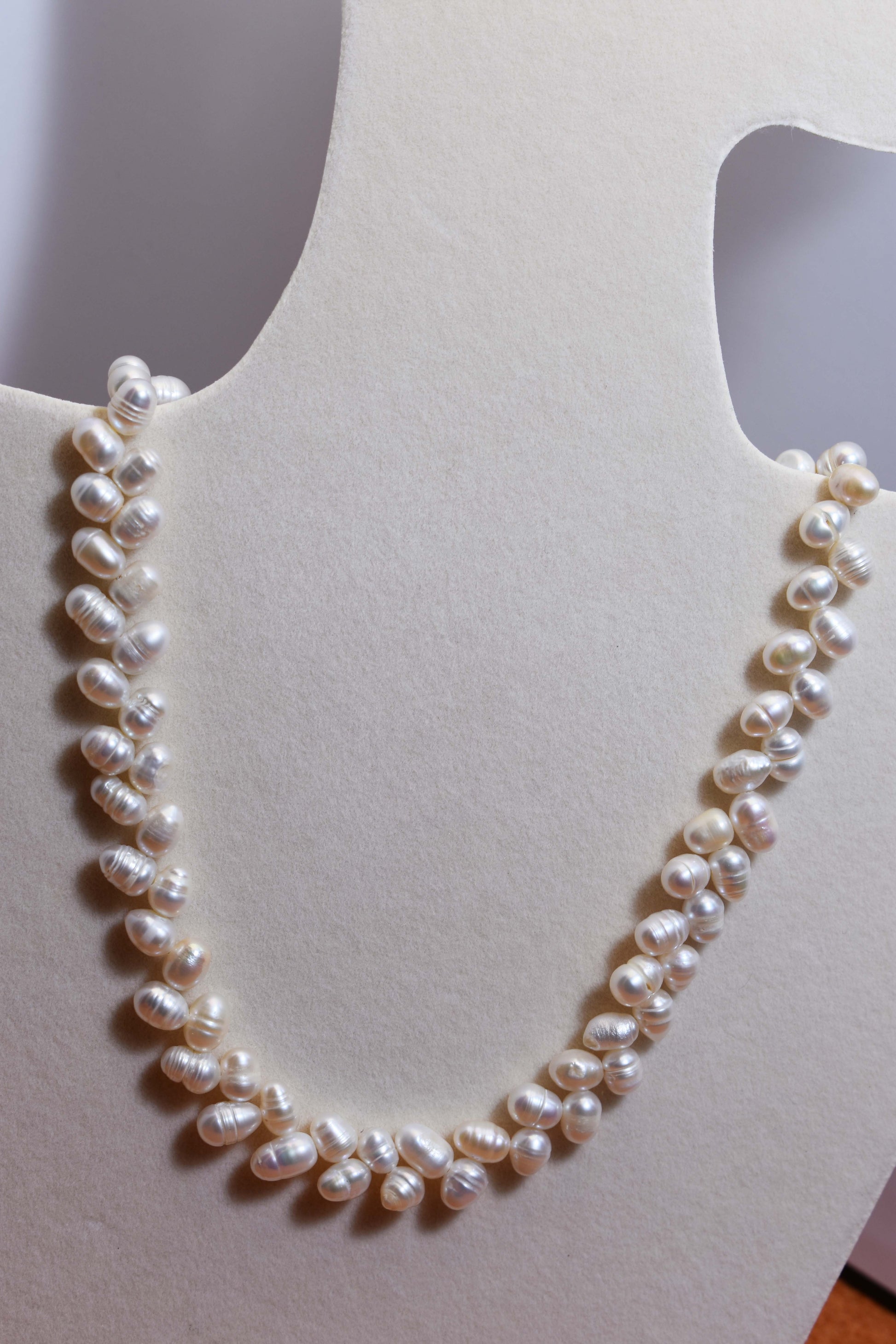 Natural pearl necklace with wheat ear shaped symmetrical left and right pearl strap and adjustable chain length