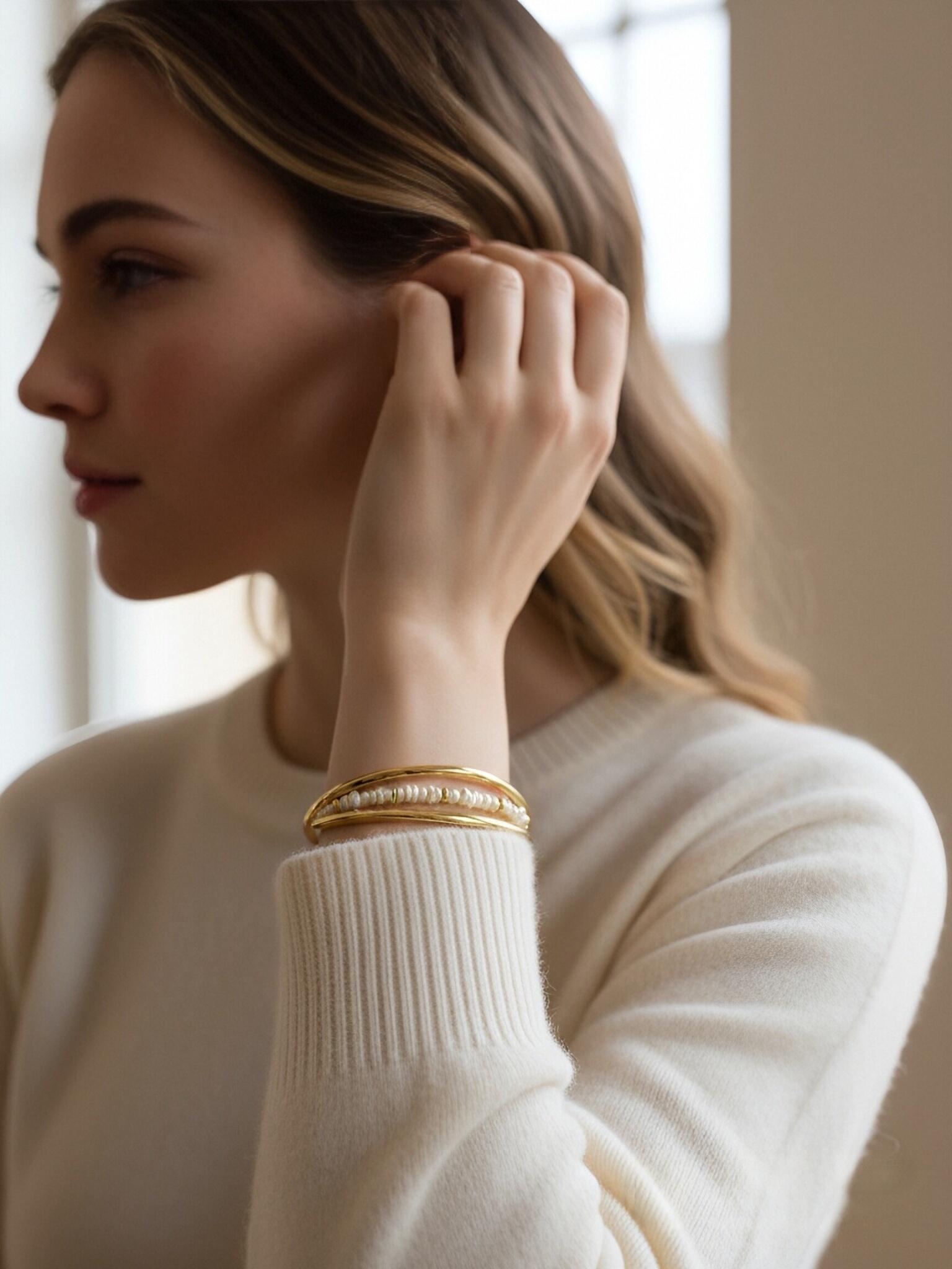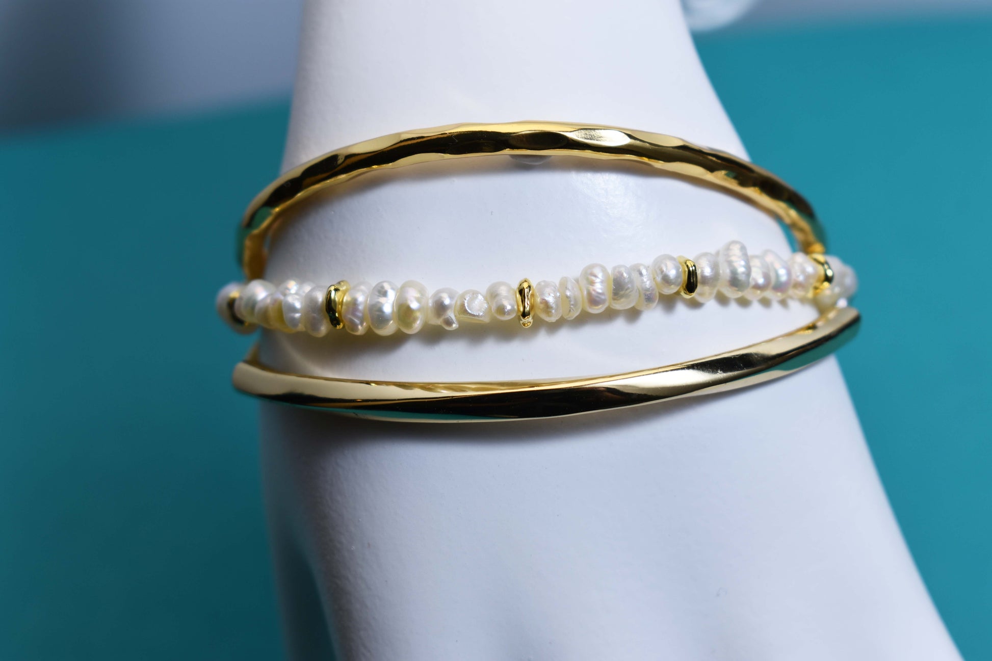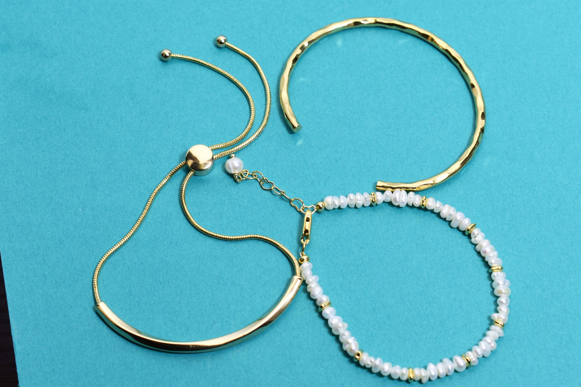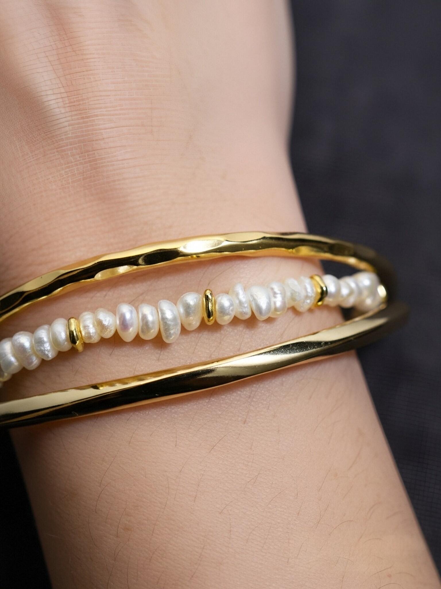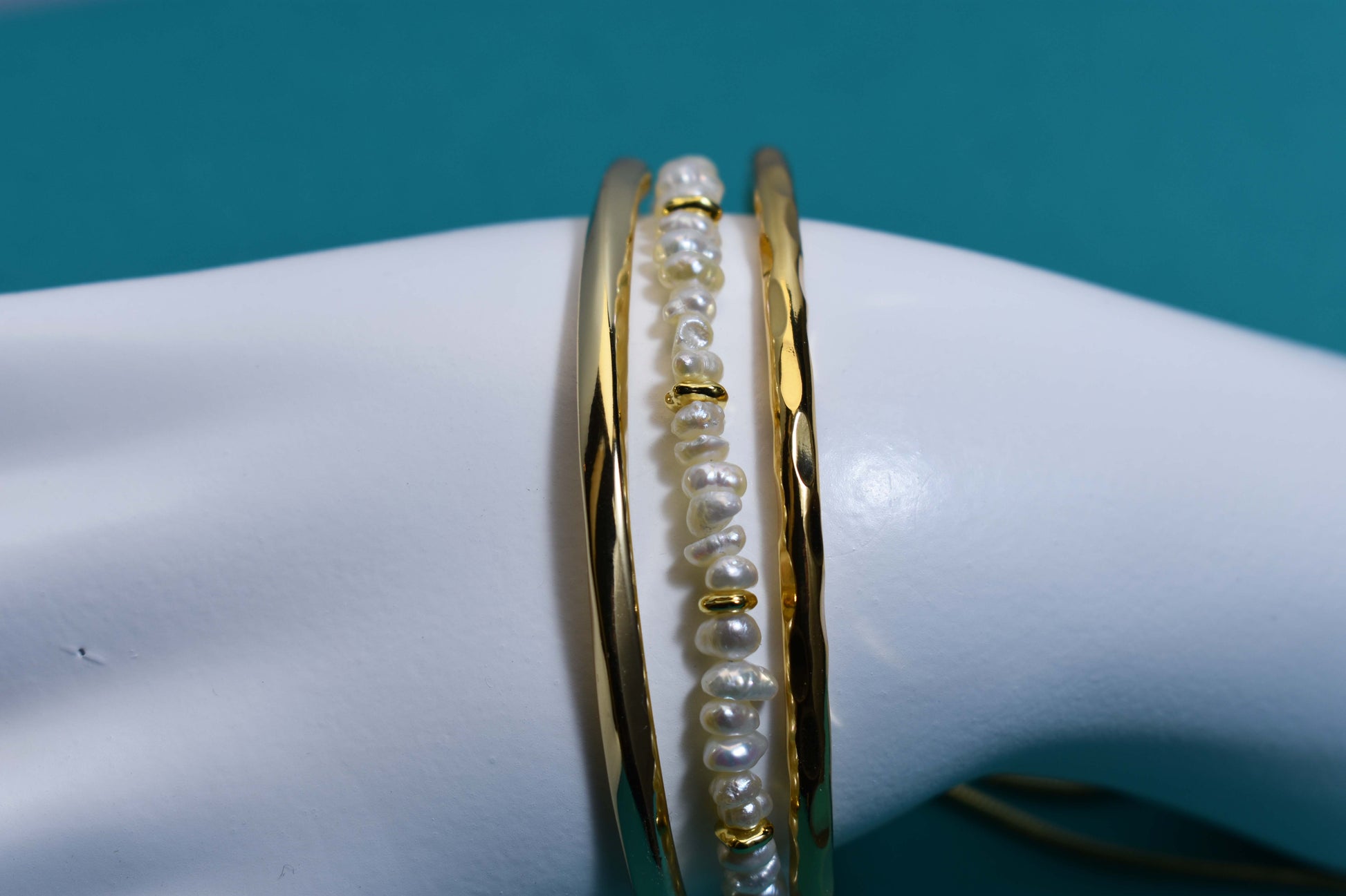 Natural Pearl Rice Bead Shaped Three Set Smile Bracelet Gold Open Hammer Bracelet