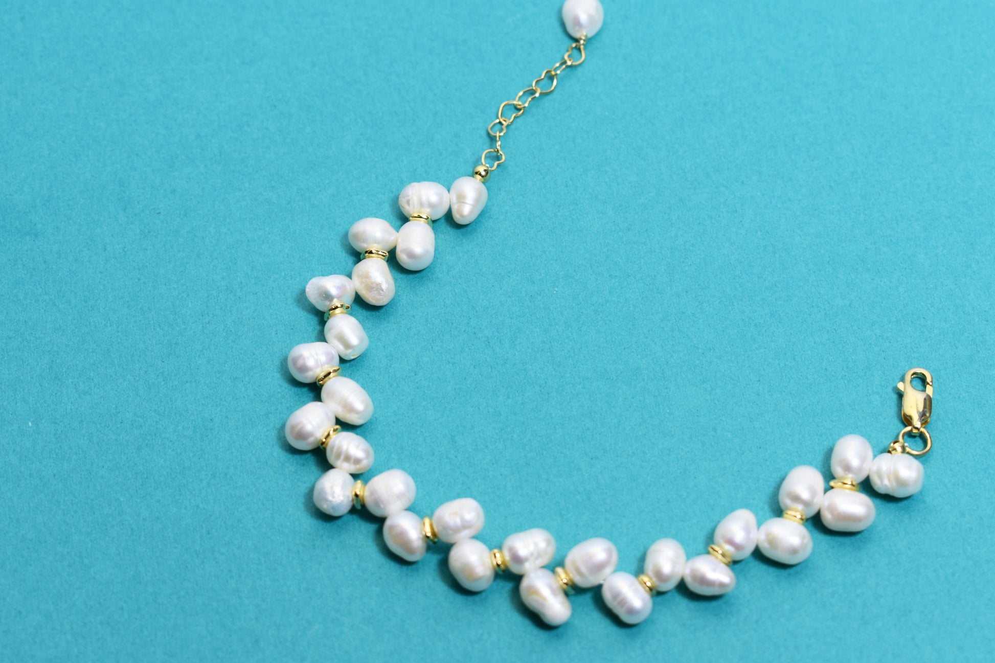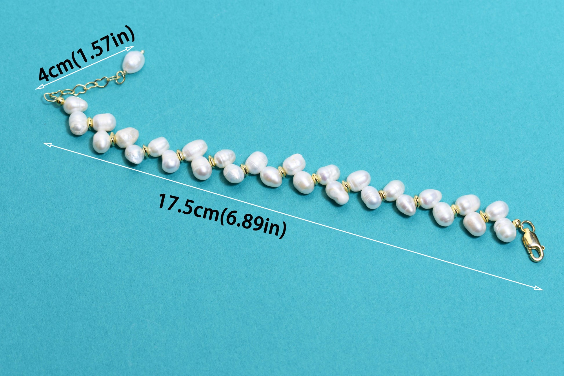 ·Natural pearl wheat ear shaped bracelet with adjustable length and extended chain